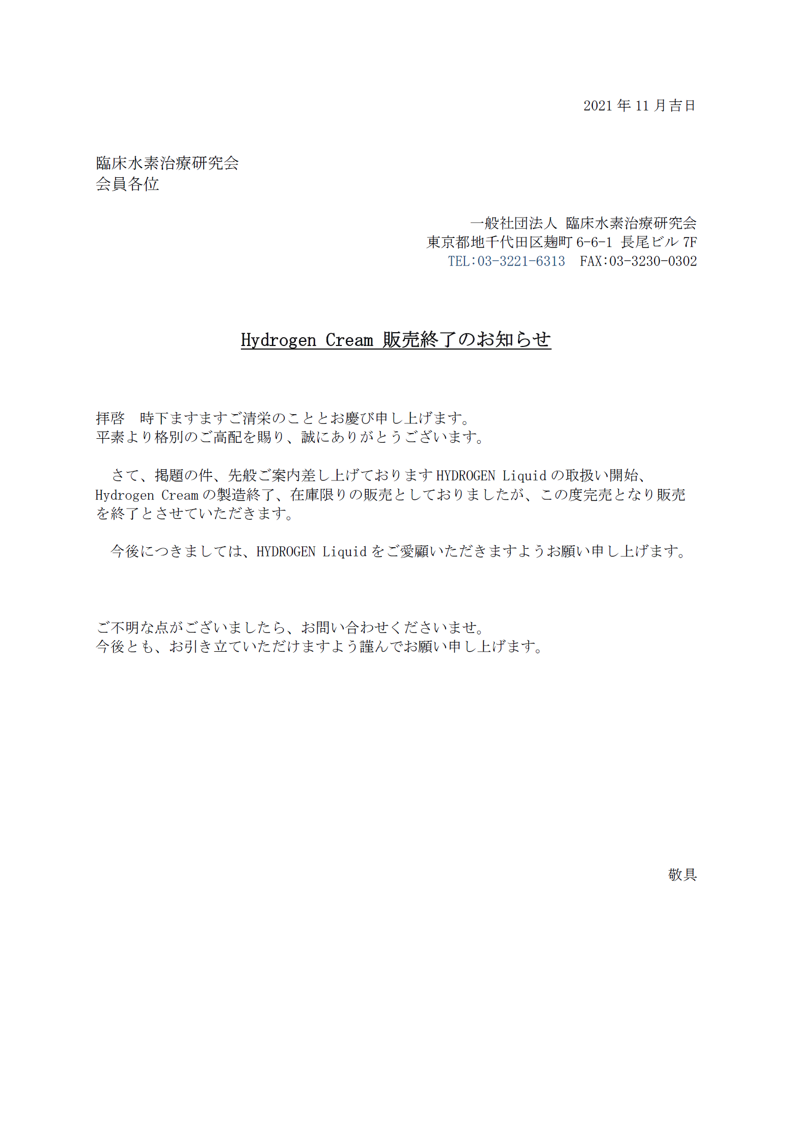 ホーム    Hydrogen Cream 販売終了のお知らせ
